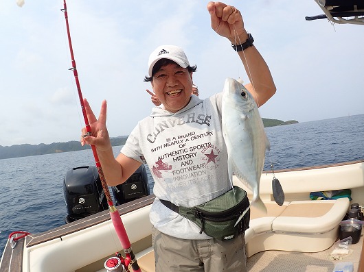パパもいい調子です!いいサイズのミーバイを釣り、これはランチのお供にピッタリ!!