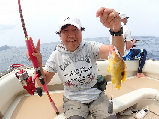 奥様が美しいロクセンフエダイを釣った直後には・・・