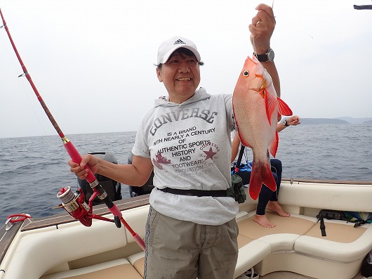今日一番のミーバイを釣ってくれました!アカミーバイは美味しいし、釣りもグイグイきて面白かったね!