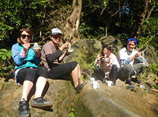 ・ようやく滝に到着です。豪快に飛び込みもできます、疲れを滝で癒しましょう! ・ここでランチにします。 さすがに腹ペコですよね? |