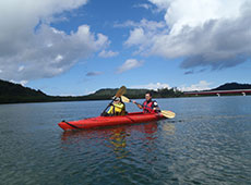 西表島の西側道路の終点・白浜港から仲良(ナカラ)川に入り片道約2時間カヌーを漕ぎます。更に約40分のトレッキングで幻のナーラの滝を目指します。カヌー・トレッキング共にハードな道のりですが、乗り越え到着した時の達成感はたまりません。滝は雄大で滝つぼに飛び込みもできます。この滝を眺めながらのランチも格別です。ハードな一日コースですのでストイックに漕ぎたい方向けとなり、中学生以上からの対象とさせていただいておりますが、もし小学生以下のお子様がいらっしゃるご家族様でも、「スタッフ貸切コース」ではご案内可能な場合もございますので、ご相談くださいませ。